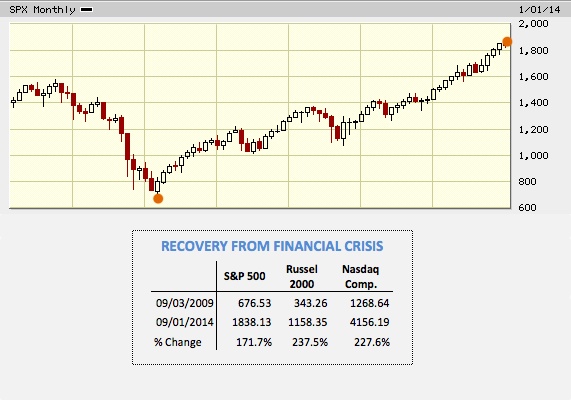 The S&P 500 rose 171%, the Nasdaq rose 228% and the Russell 2000 exploded 238%. For those who own more than 50% of their wealth in business equity, the last five years have probably been the best in recent memory. For the rest of the population who are still paying for their homes the primary benefit is that many kept their jobs when otherwise they would not have as “zombie” business and the like would have been shut down to collect whatever cents on the dollar the debt holders could. This aside, if you look at the chart below you will understand how modest these gains have really been when compared with equity gains.
